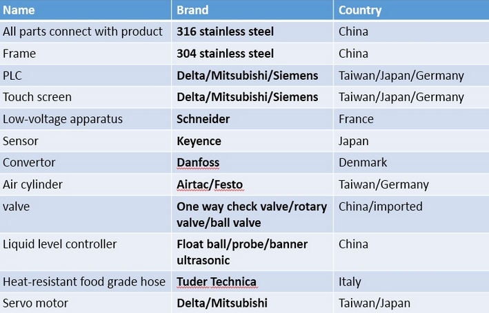 3. ส่วนประกอบทั้งหมดที่สัมผัสกับผลิตภัณฑ์ทำจากสแตนเลส 316 L นำเข้าและประมวลผลโดยเครื่อง CNC